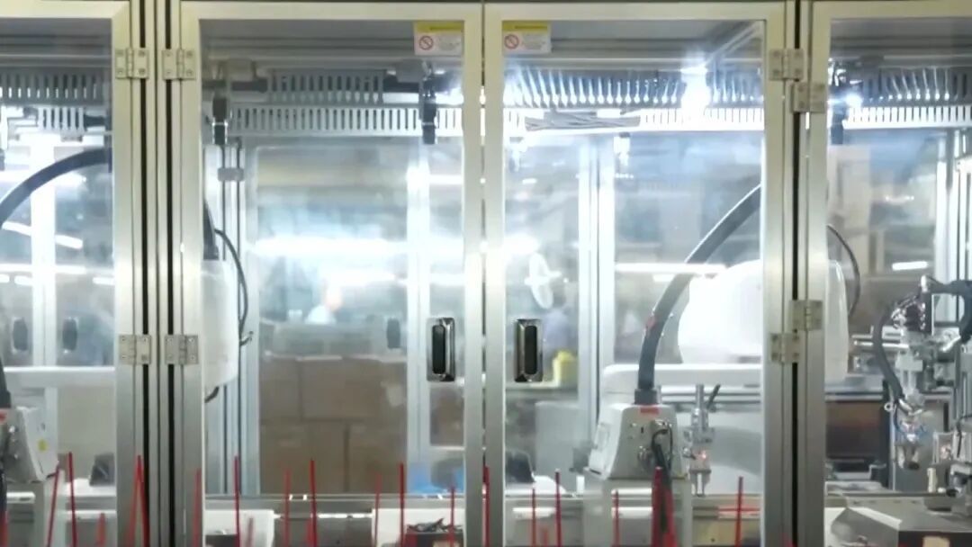王晓锋:这是我们自动化装配的一条生产线,以前是我们一个班组装配。一个班组10来个人一天的工作量,现在就靠一台设备就可以完成了。